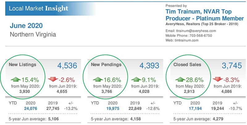 Here are some of the leading top-line metrics that best illustrate the health of the Northern Virginia residential real estate market in June. Listings are Up 15% from May, Pendings (Contracts) are Up 17%, Closed Transactions are Up 29%. The underlying strength that supported the housing market in previous months still persists - Prices are Up, Days on Market are Fewer, Sold-to-List Price Ratio is Up and Buyer Showings have Aggressively S...