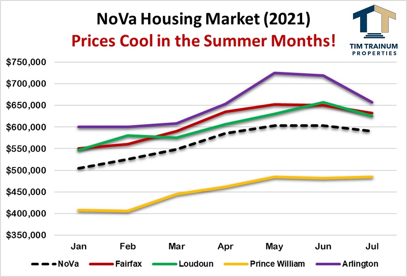 3. Prices Cooling: While much of the price gains accumulated from December to April have been maintained, the price trends shown in the first graph above have clearly flattened to turned down across all sub-markets in Northern Virginia. In the last few months, prices have fallen from 3 to 9% depending on the sub-market with Arlington County leading the decline.