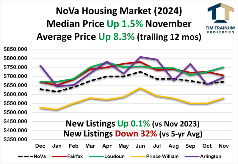 Northern Virginia prices increased in November (contracts written in October). The Oct-Nov price move was consistent with the last 6 years averaging