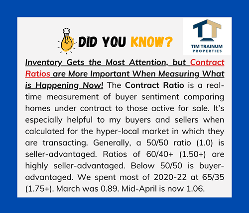Listings Under Contract represent 47% of the total March listings compared to those available and Active for sale at 53% - a 4 point improvement toward sellers since February. Contract ratios are trending toward a seller-advantaged time of year.